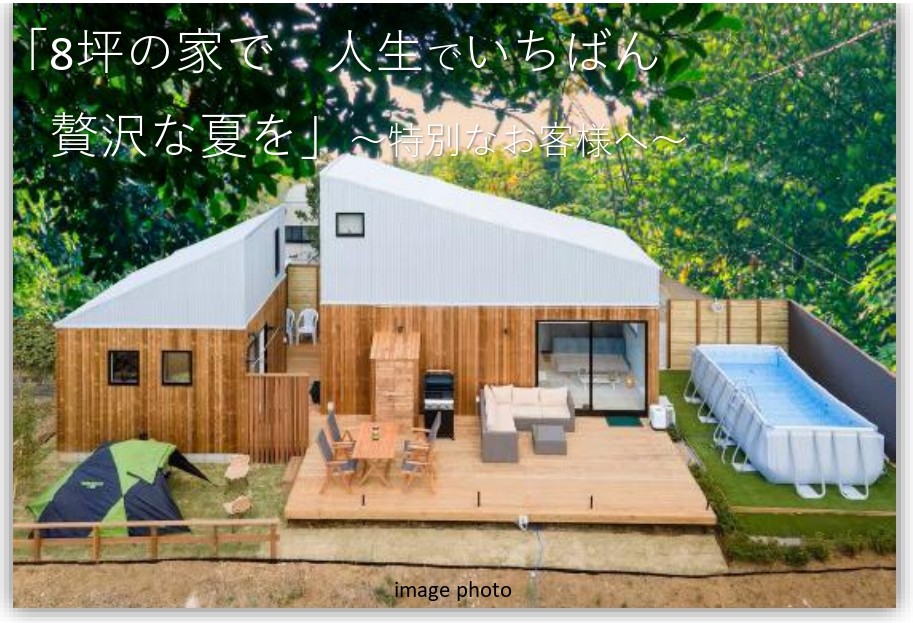 これまでご契約いただいたお客様をはじめ、見積もりのご依頼や資料請求にご記名いただいた皆さまとのご縁に、心より感謝しております。このたび私たちからの感謝の気持ちとして、夏休み企画として1泊2日の特別ご招待をご用意いたしました。️ご家族との夏の思い出づくりにぴったり!“1棟まるごと(A棟+B棟)”、別荘のようにゆっくり過ごせる特別な空間を、️応募期間:2025年6月23日~7月20日(宿泊日は学校の夏休み期間を予定)費用:宿泊料0円(通常価格23,300円~) 清掃料5,000円(税込み) (PayPay・au PAY・現金OK)こんな体験が待っています!A棟天井が高く、おとな3名までが寝るのに十分な6帖のロフトやキッチン、トイレ、シャワーブースも設置しました。まさにオトナとコドモの秘密基地です。わくわくをぎゅっと詰めて!●広いデッキからの眺め。BBQセットも用意してあります。●ロフトで山小屋気分●大きなプール※夏季限定(3月~11月)●プロジェクターとワイドスクリーンで映画やスポーツ鑑賞●野外にはテントも設置可能です。B棟●バイクルーム●サウナ室 2人まで可能●ロフトでごろんと寝る●汗と疲れを癒す屋外ジャグジー「ミラバス」応募条件:「YouTube見たよ!」のひとことをお忘れなく!まずこの動画をご覧ください👇https://youtu.be/VRv49clawSI?si=FZeOcy-IeW4SYrQ4(YouTube「ゆっくり不動産」にて紹介されました!) ご予約可能な日はお電話にてご確認をお願いいたします!1棟限定のためご招待枠には限りがございます。埋まってしまった場合は何卒ご了承のほどお願いいたします。応募はフリーダイヤルで!こちらからどうぞ。「夏休み8坪タイニーハウス宿泊企画・ユーチューブをみたよ!」とお伝えください!📞0120-751-560担当 飯田まで受付時間AM10:00~PM6:00(水曜日定休)ご応募の際は以下の規約をご承認いただき、ご応募をお願いいたします。ご予約の規約ご案内はこのSMSをご覧の既存のお客様に限定させて頂いております -